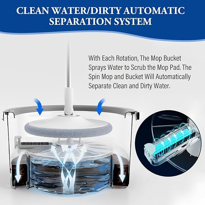 Microfiber Spin mop and Bucket Floor Cleaning System,Dual Compartment mop Bucket with Wringer on Wheels with Waterspout and 2 Thick Machine Washable Microfiber Mop Pads.