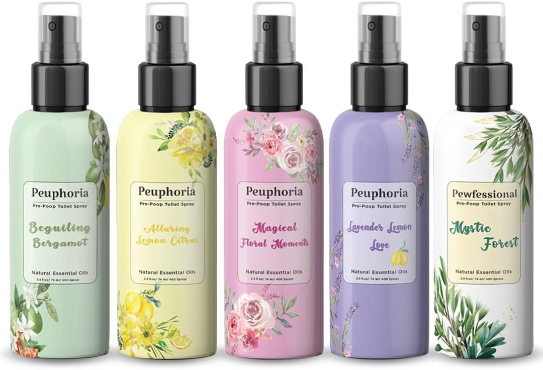 Poop spray for toilet Peuphoria pre poo toilet spray odor eliminator Bathroom Air Freshener 5 bottles 2.5 oz Travel Size